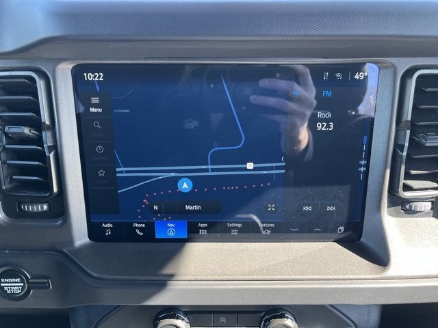 This vehicle also has Equipment Group 222A Mid Package (2-Door Intelligent Access w/Lock/Unlock, Ambient Footwell Lighting, Connected Navigation, Dr & Pass Illuminated Sliding Visor Vanity Mirrors, Dual Smart Charging USB Ports, Dual-Zone Electronic Automatic Temperature Control, Front Row Heated Seats, Power Outlet - Back Side of Center Floor Console, and Rear Parking Sensors), Lane-Keeping System, 4-Wheel Disc Brakes, 4.46 Axle Ratio, 7 Speakers, ABS brakes, Air Conditioning, Alloy wheels, AM/FM radio: SiriusXM with 360L, AM/FM Stereo, Auto High-Beam Headlamps, Auto High-beam Headlights, BLIS Blind Spot Information System, Brake assist, Carbonized Gray Molded-In-Color Hard Top, Cloth Bucket Seats, Compass, Delay-off headlights, Driver door bin, Driver vanity mirror, Dual front impact airbags, Dual front side impact airbags, Electronic Stability Control, Emergency communication system: 911 Assist, Exterior Parking Camera Rear, Front anti-roll bar, Front Bucket Seats, Front Center Armrest, Front reading lights, Front wheel independent suspension, Fully automatic headlights, Heated door mirrors, Illuminated entry, Integrated roll-over protection, Internet access capable: FordPass Connect, Leather Shift Knob, Low tire pressure warning, Occupant sensing airbag, Outside temperature display, Overhead airbag, Overhead console, Panic alarm, Passenger door bin, Passenger vanity mirror, Power door mirrors, Power steering, Power windows, Pre-Collision Assist w/Automatic Emergency Braking, Radio data system, Rear-View Camera, Rear-Window Defroster & Washer, Remote keyless entry, Security system, SiriusXM w/360L, Speed control, Split folding rear seat, Steering wheel mounted audio controls, SYNC 4, Tachometer, Telescoping steering wheel, Tilt steering wheel, Traction control, Trip computer, Variably intermittent wipers, and Wheels: 17 Carbonized Gray-Painted Aluminum.