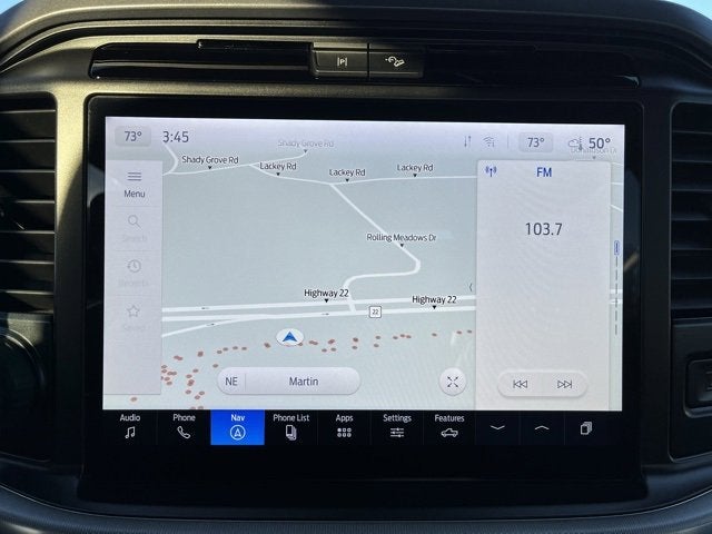 This vehicle also has Bed Utility Package (4 Pickup Box Tie-Down Plates, LED Box Lighting, Power Tailgate, and Pro Access Tailgate), Equipment Group 500A Standard, FX4 Off-Road Package (4x4 FX4 Off-Road Bodyside Decal, Electronic Locking w/3.31 Axle Ratio, Hill Descent Control, Monotube Rear Shocks, Off-Road Tuned Front Shock Absorbers, Rock Crawl Mode, and Tray Style Floor Liner w/o Carpet Mats), 4WD, Heated front seats, Navigation system: Connected Navigation, Ventilated front seats, 4-Wheel Disc Brakes, 6 Angular Bright Anodized Step Bar, 6 Extended Running Boards, 8 Speakers, ABS brakes, ActiveX Trimmed Bucket Seats, Adjustable pedals, Air Conditioning, Alloy wheels, AM/FM radio: SiriusXM with 360L, Auto High-beam Headlights, Auto-dimming door mirrors, Auto-dimming Rear-View mirror, Automatic temperature control, Brake assist, Bumpers: chrome, Chrome wheels, Compass, Delay-off headlights, Driver door bin, Driver vanity mirror, Dual front impact airbags, Dual front side impact airbags, Electronic Stability Control, Emergency communication system: SYNC 4 911 Assist, Front anti-roll bar, Front Bucket Seats, Front Center Armrest, Front dual zone A/C, Front fog lights, Front License Plate Bracket, Front reading lights, Front wheel independent suspension, Fully automatic headlights, Garage door transmitter, Heated door mirrors, Heated steering wheel, Illuminated entry, Internet access capable: FordPass Connect 5G, Low tire pressure warning, Memory seat, Occupant sensing airbag, Outside temperature display, Overhead airbag, Overhead console, Panic alarm, Passenger door bin, Passenger vanity mirror, Pedal memory, Plastic Drop-In Bedliner, Power door mirrors, Power driver seat, Power passenger seat, Power steering, Power windows, Radio data system, Radio: B&O Sound System by Bang & Olufsen, Rain sensing wipers, Rear reading lights, Rear seat center armrest, Rear step bumper, Rear window defroster, Remote keyless entry, Security system, Speed control, Split folding rear seat, Steering wheel mounted audio controls, SYNC 4 w/Enhanced Voice Recognition, Tachometer, Telescoping steering wheel, Tilt steering wheel, Traction control, Trip computer, Turn signal indicator mirrors, Variably intermittent wipers, Voltmeter, Wheel Well Liner, and Wheels: 18 Chrome-Like PVD.